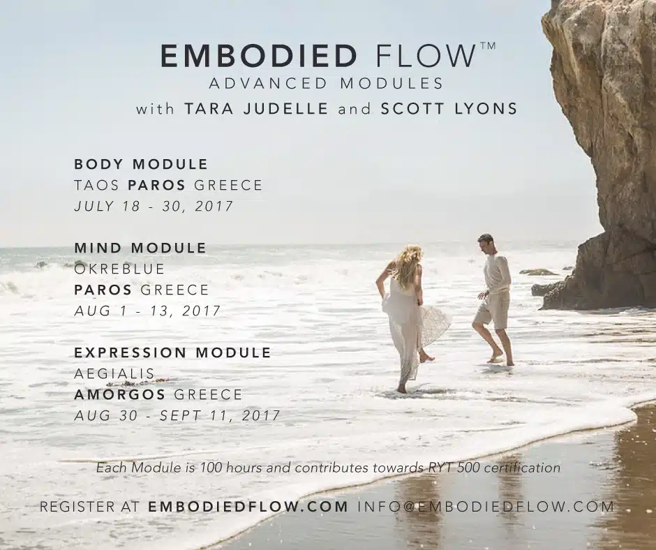 The first two modules, BODY and MIND (100 hours each) will be offered in Paros, 18 July – 13 August, 2017. The EXPRESSION Module (100 hours) will be offered in Amorgos Greece August 30 – September 11, 2017. These modules are also open to advanced yoga practitioners for credit with Continuing Education Units (CEU).